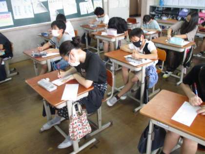 今日は,国語と書写の学習を合わせて,今までお世話になった先生に暑中見舞いを書きました。それぞれが相手の様子をうかがったり,自分の現状を伝えたりするお手紙をかくことができました。