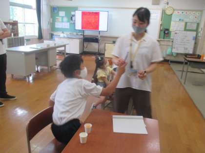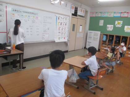 栄養の先生から上手なジュースの飲み方を学習しました。