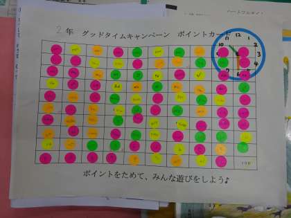 2年生では,休み時間の後などにすわれるように,みんなで声をかけあい,5日間で99まいのシールをあつめました☆