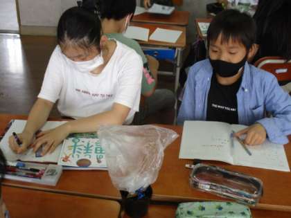 今日は植物に袋をかぶせたものを観察し,蒸散について確かめる実験を行いました。吸い上げ実験と同じようにしっかりと目で見て確認することができるので,子どもたちも納得の表情でした。