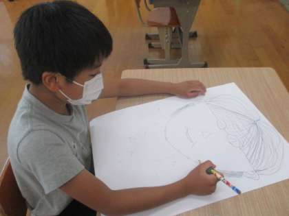 図工ではおじいちゃんおばあちゃんの絵を書きました。