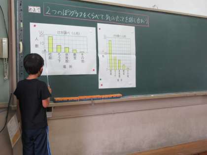 その中で同じ数値のグラフでも,1目盛りの扱いが変わると見え方が大きく変わることを学びました。