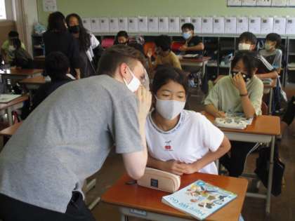 今日は単元の最後の時間かつ1学期最後の時間でした。ALTの先生と一緒にゲームをしながらこれまでに習った表現などを確認しました。テレフォンゲームでは,聞いた英文を必死に覚えて口に出し,伝えていく姿が印象的でした。