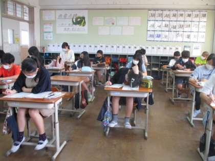 1学期ももうすぐ終わることもあり,これまでの学習のふり返りを行いました。たくさん問題を解きながら自分にまだ定着しきっていない課題を見つけ,今後の学習に生かしてほしいと思います。