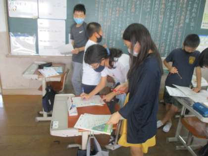 外国語の学習では,自分の夏休みのくらしについて友だちと伝え合う活動をしました。コロナ禍でも,各御家庭で工夫しながら楽しい夏休みを過ごせたようでした。