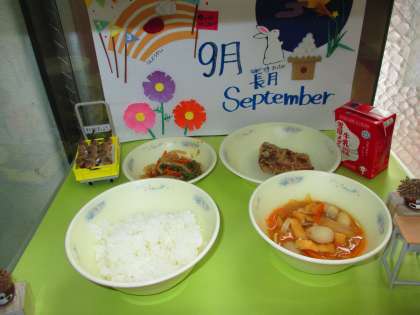 9月8日(水)の給食は,ごはん,牛乳,さばのたつたあげ,野菜のきんぴら,いものこ汁です。今日の給食クイズは,「地産地消」についてでした。その土地でとれたものを,その土地で食べることを「地産地消」といいます。地産地消の良さは,新鮮でおいしく,運ぶ距離が短いため環境にもやさしいということを学びました。