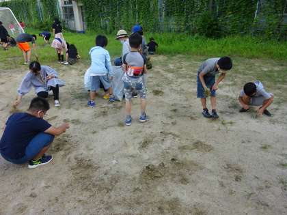 うんどう会にむけて,うんどうじょうの草ぬきをしました。