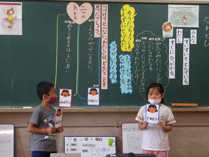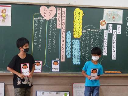 かんそうを こうりゅうすると,「何をがんばりたいの?」「どうして?」「がんばってね!」など,あい手にメッセージをおくっている人がいて,すてきだなぁと思いました。