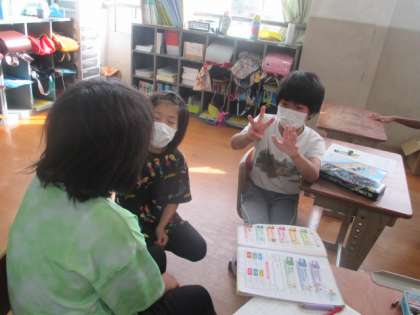 グループで楽しく交流して,自分の好きな時間を答えていました。