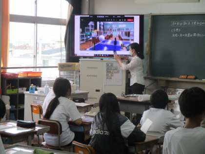 GIGA端末を使えるとこんなこともできるんです。今日の理科では,教室と理科室がオンライン上でつながっており,理科室の装置を映し出しながら教室で実験方法の確認を行いました。おかげで理科室に移動してからスムーズに実験を行うことが出来ました。