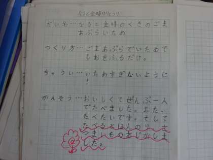 きのう,もって帰った なると金時のつるを食べたことを,自学に書いてきてくれました!