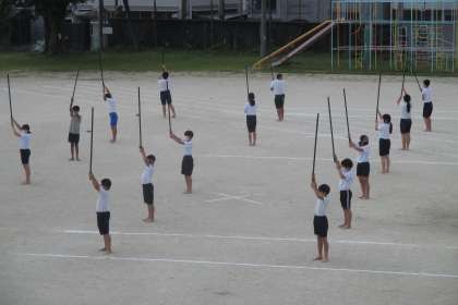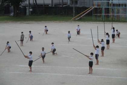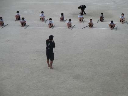 運動会に向けて運動場での練習が始まってきました。今までの体育館での練習とは違い,緊張感も出てきました。初めての運動場での練習に,戸惑っている子どももいましたが,これからの練習で克服してくれることでしょう。だんだんと運動会モードに学校全体がなってきました。