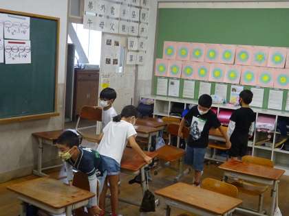 教室そうじの人たちが きょうりょくしあっていたので,あっというまに おわってしまいました!