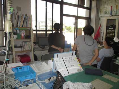 3時間目の職員室。運動場では5・6年生が明日の運動会での演技のリハーサル。じっと見つめる教職員。温かい空気が流れています。「涙出るなぁ〜」という声が聞こえてきます。私はもうすでに泣いていました・・・。明日の本番に向けて一生懸命の子どもたちの姿って,本当に素晴らしいですね。とってもいい時間でした。