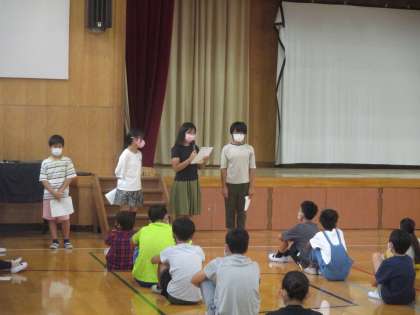 にこにこ集会があり,前期の児童会代表から後期の児童会代表にバトンが渡されました。本当によくがんばってくれた前期児童会代表。ご苦労様でした。後期の児童会代表,養正小学校をよろしくお願いします。