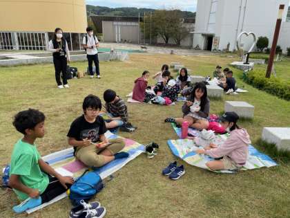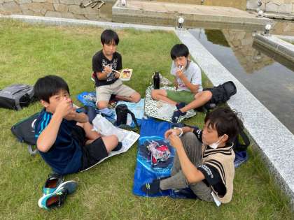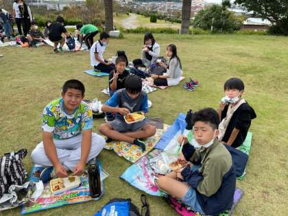 楽しみにしていたお弁当タイム。みんな嬉しそうに頬張っています。外で食べるお弁当は最高です。これも思い出の一つですね。