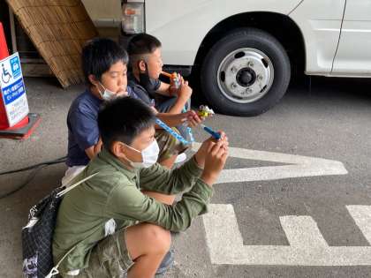 吹き戻しの里で楽しく吹き戻しを作りました。思う存分吹き戻しで楽しんだ6年生。どこでも楽しめる6年生は素敵ですね。