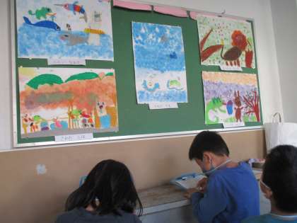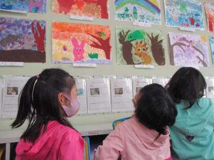 「〜さんの色の塗り方いいな〜」「動物が大きくていいな〜」など素敵なところをたくさん見つけていました。