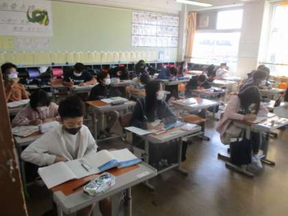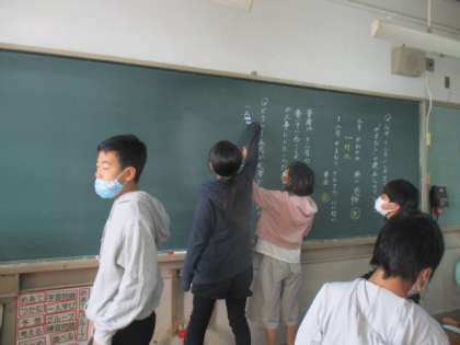 現在国語科の学習では,「やまなし」という宮沢賢治の作品を読んでいます。宮沢賢治ワールドにみんなで引き込まれながら独特な表現や作品の世界観を読み取っています。