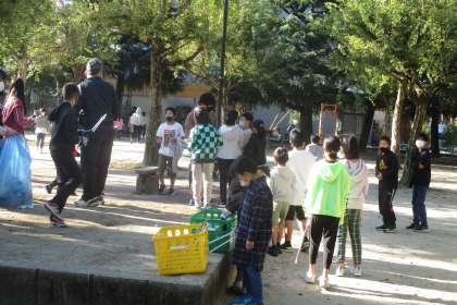 久々の飛鳥井公園でのクリーンキャンペーンでした。児童会代表も後期の子どもに代わりました。寒い朝にも関わらず,91名の参加がありました。たくさんの参加者があり,うれしそうな児童会代表でした。ご苦労様!!!