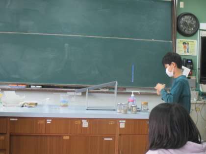 今日は理科室で実験を行い,雨水などの水に流されたれき・砂・泥がどのように堆積して層を形成していくのかということを目で見て確認することが出来ました。