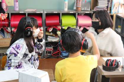 「障がいについて知ろう」という今月の人権目標。5年生は,耳の不自由な方の困りを体験してみました。イヤーマフをつけてみると周囲の音が本当に聞きづらくなります。子どもたちはその体験から,「不安になる」「友だちと話をしにくい」といったような気づきをもつことができました。また,その体験を生かし,生活の中でどんな場面で困りがあるか想像したり,自分にできることを考えたりすることもできました。