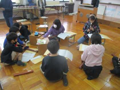 音楽の時間を使って,どんどん練習を進めています。今日は合奏の練習をメインに行い,楽器ごとに分かれてパート練習を行いました。