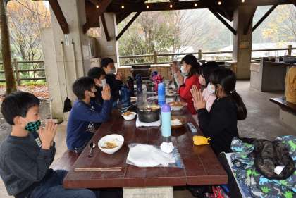 野外活動で,アクトパル宇治に行ってきました。朝の天気はあいにくの雨。しかし,子どもたちはそんなことを気にせず,全力で野外炊事を楽しみました。最近調理実習をしたこともあり,その経験を生かしながら頑張りました。グループで一生懸命作ったカレーはとてもおいしかったようで,喜んでカレーを食べていました。苦労して作ったからこその,最高の味でした。