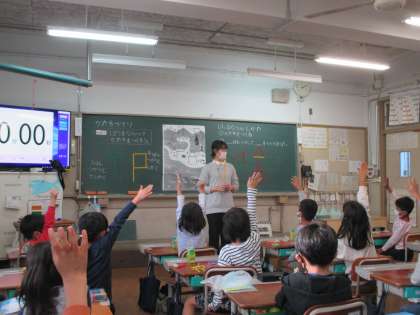色板や棒を使っていろんなかたちづくりをしています。自分たちでいろんなかたちを考えるのが楽しいようで,毎回意欲的に取り組むことができています!