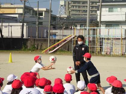 サッカーのことだけではなく,自分で決める・行動することの大切さも教えていただきました。子どもたちにとっては新鮮なことばかりで,とても楽しそうでした。