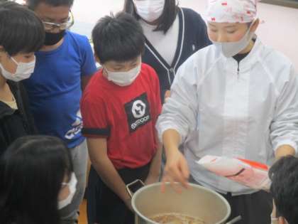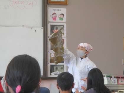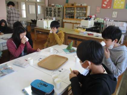 今日は栄養教諭の先生によるだしのうまみについての授業をしていただきました。実際に出汁を試飲したり,出汁の取り方を見せていただいたりして普段の食事で当たり前のように口にしている出汁について学習をすることが出来ました。