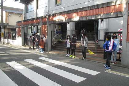 養正小学校では「スーパーあいさつ」を頑張っています。あいさつするときに,止まって,頭を下げてあいさつをします。このあいさつを大切にしていこうと,児童会中心にあいさつ運動が行われています。児童会以外の子どもたちも参加し,声をかけてくれています。登校する子どもたちだけでなく,道行く人にもあいさつをしています。気持ちの良い朝になりますね。
