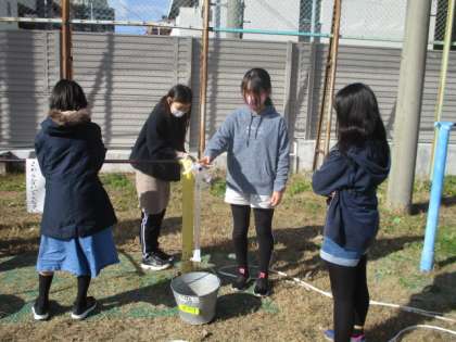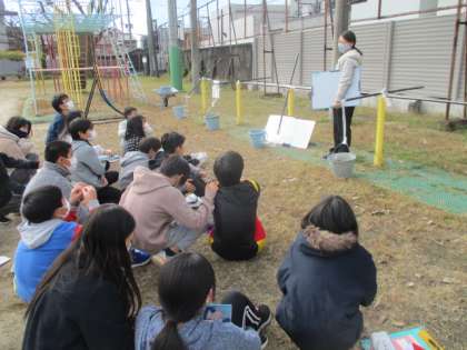 今日の理科の学習は,運動場に出て,身体を使って学習をしました。てこのはたらきを実際に肌で感じて子どもたちhが驚いている様子も見受けられました。