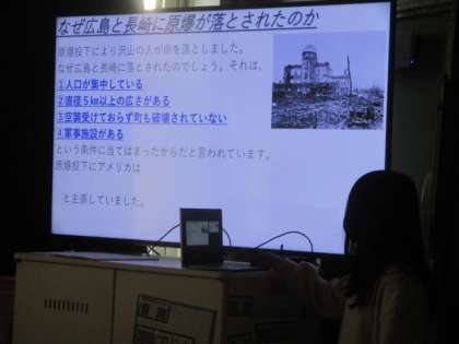 ドリームの学習では,平和をテーマに自分で調べて,パワーポイントにまとめて発表します。現在発表会を行っていますが,1人ひとり目をつける点が少しずつ違うなど同じテーマであっても様々な発表を聞くことが出来ています。この学習から平和を目指して生きていける子どもたちに育っていってほしいと思います。