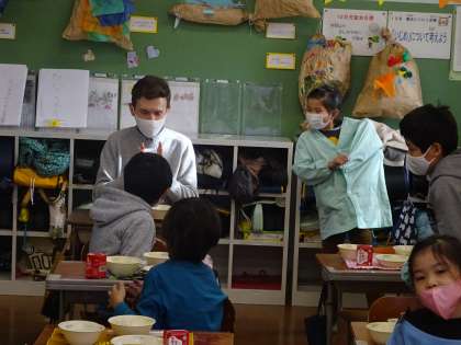 きゅう食時間に,ガレス先生が来てくれました。