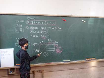 「白組は,赤組より4点少ない」と言いかえて,しきを立てました!