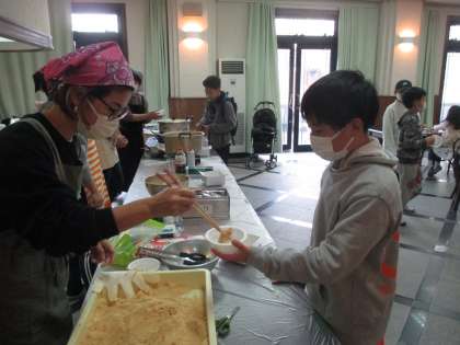 12月4日(土)『もちまつり』をしました。PTA主催で毎年行っているもちつき大会をどうにか形を変えてできないかと考え,買ったおもちを調理し,提供することで今年度は実現することができました。感染対策をとり,部屋に入る人数を制限した中でしたが,たくさんの方が訪れ大盛況でした。子どもたちは味選びからワクワク,おいしいおもちを食べてにこにこ。嬉しそうな姿がいっぱいでした。