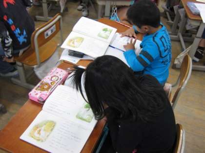 2年生の国語では今、お手紙を学習しています。今日は音読げきのはっぴょうにむけてけいかくをたてました。その後、それぞれの一番お気に入りの場面のさし絵をノートにかきました。