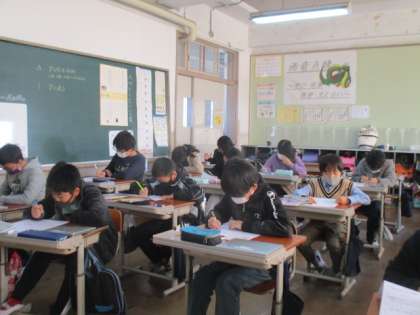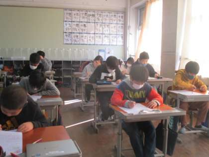 学期末はどの教科もテストが重なってきます。今日は算数のテストに加えて漢字50問のテストを行いました。いずれのテストも早くから自主学習等を活用しながら備えていたこともあり,子どもたちはやりきったというような表情をしていました。