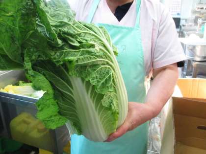今日は,冬においしい春菊と白菜をつかいました。春菊は,独特のかおりがします。調理員さんは,「低学年の子どもたちは食べられるかな〜?」と心配していました。ひ口先生もみなさんに,「大人の味だから,みんな苦手かもしれません・・・」と言いましたが,「ちょっとにがいけれど,それもおいしいよ!」「いいかおりがする!」「大人の味なの?おいしいよ。」と残さず食べることができました。調理員さんも,びっくりしていました。