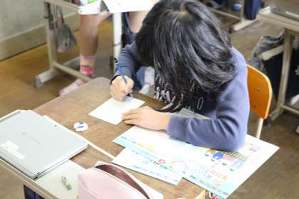 国語の学習で年賀状を書きました。はがきに書くということで間違えないように一生懸命住所を書いたり,郵便番号を自分で調べたりするなど,緊張感をもって年賀状を書いていました。その思いがしっかり送る相手に伝わると良いですね。