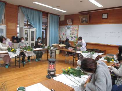 (校長先生)「これは校長先生が生けたお花なんだよ。お正月にピッタリでしょ?」