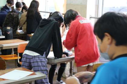 家庭科の学習で,教室や廊下のよごれを探してみました。汚れを発見したら,セロハンテープによごれを付けて,集めるということをしていきました。そのごみの種類や汚れ方,そこから気づいたことなどを考えていくなどして,学校の汚れを知ることができました。次はそこに相応しい掃除の仕方について考えていきます。