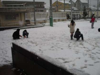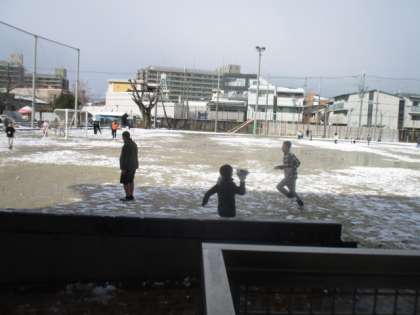今日は昨晩から降った雪が運動場や校舎の屋根に積もっていました。朝からみんなテンションが上がって,雪合戦をしたり,雪だるまを作ったりして雪を楽しむことができました。