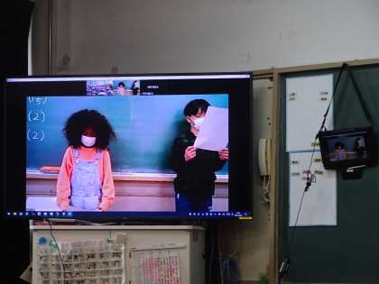 画面越しですが,一緒に給食を食べることができて とても楽しそうでした!