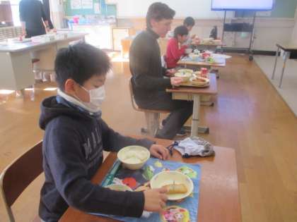 ALTと給食交流をしました。