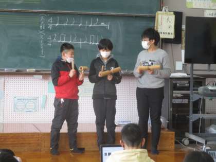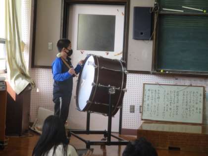 現在,音楽の授業では残念ながら歌を歌ったり,リコーダーを演奏したりすることができません。しかし,今だからこそできることもあるのです。今日はGIGA端末を利用してピアノの鍵盤をたたいてみたり,ウッドブロックや大太鼓などの打楽器を使った合奏などをしました。こんな状況下でもできることはたくさんあるので,上手にみんなで学習を進めていきたいと思います。