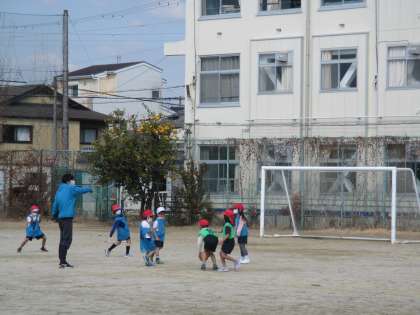 ボールを蹴ってパスを出すのはなかなか難しいですが,少しずつできるようになっています。