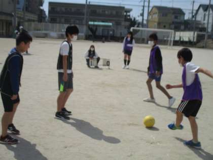 体育でのサッカーの授業も中盤に差し掛かっています。やたらめったらボールだけを追いかけていた序盤から考えると,ずいぶんゲームらしくなってきています。コートに立つメンバーのそれぞれの役割を明確にしているのが一つの要因です。ゲームをこなしていく中でどういったことを意識するといいのかということに気づき始めています。