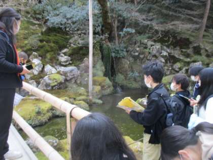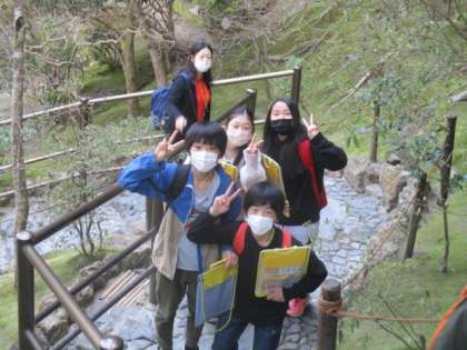 今日はこれまで学習してきたことにゆかりのある地や石碑をめぐる校外学習に出かけました。みんなで歩いて,銀閣寺の庭園,全国水平社設立の地を巡りました。それぞれで子どもたちはワークシートを使いながら学習を確認したり,さらに新たな課題を見つけたりしていました。